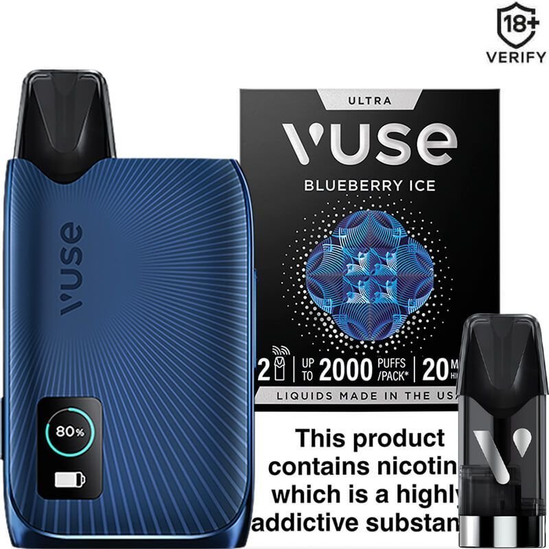 Discover the Vuse Ultra – Vuse’s most advanced vape yet. This new Bluetooth connected smart device is a rechargeable vape that offers a variety of new features. Crafted with precision engineering using high quality aluminium cover and ergonomic design, this smart connected device is designed to change your vaping experience with more control and features for you to personalise and explore using the MyVuse™ App. MyVuseApp features are only available when using Vuse Ultra pods with the Vuse Ultra device kit. Compatible with Vuse Ultra & Vuse prefilled pods. Pods are sold separately.     Connectivity The Vuse Ultra device features Bluetooth connectivity allowing it to sync with the MyVuse™ app via your smartphone. This connection ensures that your device and app are successfully paired to allow for a personalised vaping experience. When connected to the app it allows users to personalise and control several features such as CloudControl ™, Flavour Autotune ™, Find My App and Usage Tracker. The MyVuse™ app leverages this Bluetooth connection to offer a range of features, from tracking your flavour usage with the Ultra Pod Tracker to receiving battery recharge reminders. By connecting your Vuse Ultra device via Bluetooth, you can unlock the full potential of the MyVuse™ app, enhancing your vaping journey with customisation and convenience.     ClearView™ The new ClearView™ display is designed to allow you to easily monitor your e-liquid levels, cloud intensity mode, battery power level and flavour & nicotine strength*, all briefly. Use the menu buttons on the side of the device to interchange the screen view. *Only with Vuse Ultra pods     CloudControl™ Select your preferred flavour intensity with up to 40 different levels. This feature allows you to customise your vape, ensuring a personalised experience every time. Whether you prefer a mild or intense flavour sensation, CloudControl™ gives you the flexibility to adjust your settings to match your preferences. Improved Safety This device features a lock feature to ensure the Vuse Ultra is secured and providing peace of mind when taking your vape on-the-go. You can secure your app data by creating a secure PIN to encrypt your data & protect your app preferences. Haptics enabled Equipped with a haptic motor, this device provides vibrational feedback to ensure users are informed about important aspects of their device. The device will vibrate to notify you when your puffing session has reached the number of puffs set in the app, when e-liquid levels in your pod are low or when the battery level crosses a threshold, minimum of 10% or max or 30%. You can view and change the haptic status within the MyVuse™ app.     Charging time The Vuse Ultra offers fast charging capabilities via USB-C & wireless charging. Capable of charging up to 80% in just 20 minutes, with a full recharge in just 35 minutes. Removeable battery The battery inside the device is replaceable to to allow you to switch between batteries when running low on charge or to replace when needed. By offering a removeable battery it is now even easier to drop it off at your closest recycling point for an easy disposable.     Flavour tailored to you One of the latest features is the Flavour AutoTune™, this optimises your device to the flavour selection, adjusting the devices heat, power and intensity to provide the best vaping experience for you. Increased flavour control Another new feature is CloudControl™ which allows you to customise your experience by changing the wattage of your device, with up to 40 different levels to pick from.     Exclusive flavours to Ultra Vuse are excited to bring both classic and brand new exclusive flavours to the Vuse Ultra range: Classic flavours Golden tobacco – a smooth blend that delivers a tobacco taste experience Mint ice – mint flavour with an intense cooling finish Blueberry ice – blueberries with an icy finish Exclusive flavours Cherry ice – combination of cherries and a crisp icy finish Mango calamansi – offering an exotic taste Dragon fruit pomegranate – delivering a refreshing flavour Kit contains 1 x Vuse Ultra device 1 x Removable 530 mAh rechargeable battery 1 x USB-C charging cable 1 x User manual Specifications Dimensions: 86.1 mm (height) x 38.3 mm (width) x 16.1 mm (depth) 530 mAh internal capacity battery Device material: aluminium body with soft-touch plastic back ClearView™ display screen to monitor e-liquid & battery levels FlavourIQ™ automatically adjusts to your pods flavour Adjustable power modes with the CloudControl™ Draw activation USB-C fast-charging 530 mAh internal capacity battery Compatible with the MyVuseApp via bluetooth for additional features Compatible with Vuse Ultra & Vuse prefilled pods Not suitable for use by persons under the age of 18.